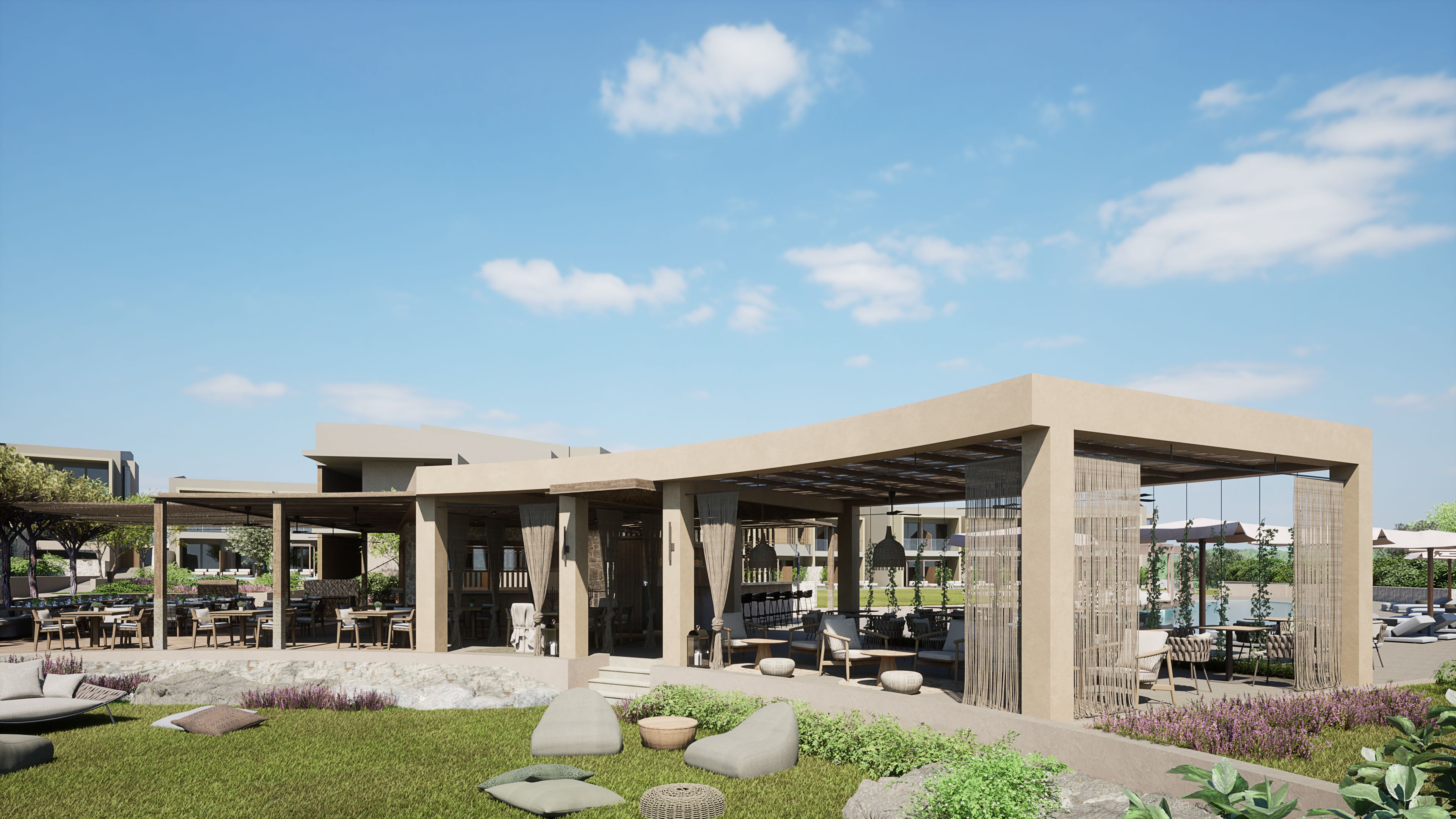 On a hill surrounded by olive trees, overlooking the shore of the Aegean Sea and its breathtaking azure waters, lies Zoëtry Halkidiki Resort & Spa (+16). With the mythical Mount Olympus as a majestic backdrop, nature unveils its awe-inspiring beauty, inviting guests to explore the untouched wonders of the nearby Natura Reserve, where biodiversity thrives and crystal-clear waters meet pristine sands. Zoëtry Halkidiki is located on the Kassandra peninsula in Halkidiki, one of the best-kept secrets in the whole of Greece. The hotel is 50 minutes by car from Thessaloniki International Airport and 25 minutes from the center of Nea Moudania.