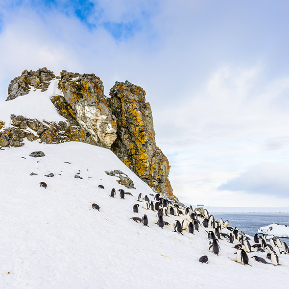 Known as one of the safest natural harbors in the world, Deception Island lures tourists with its maritime history and unique geological features. Thanks to volcanic activity, the water in this collapsed caldera is warm in comparison to the Antarctic air, though even the island’s chinstrap penguins prefer to stay shore side due to water’s heat. As you walk along the black-sand beaches, observe the remains of the island’s whaling station which operated during the early 20th century.