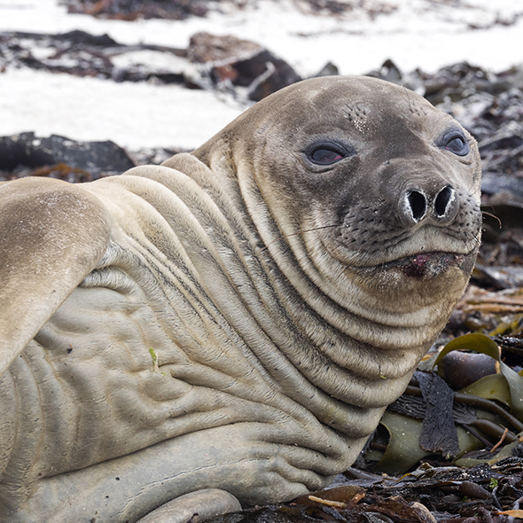 King George Island is one of the largest of the South Shetland Islands and is about 75 miles off the coast of Antarctica. It is home to elephant, Weddell and leopard seals, and Adelie, chinstrap and gentoo penguins. There are several other seabirds, including skuas and southern giant petrel, which nest on this island during the summer months.