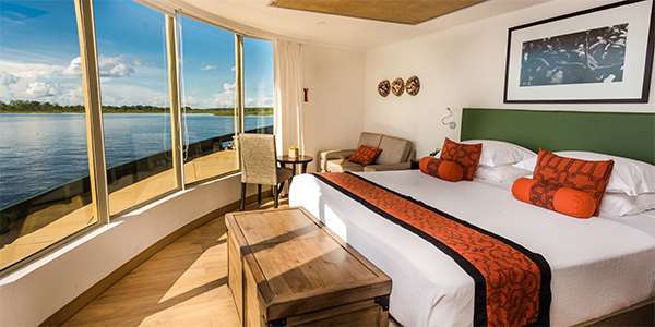 Tailor-made for cruising the Amazon, the Delfin III can accommodate 44 cruise ship guests in four different styles of suites featuring floor-to-ceiling panoramic windows. Cruise along the Amazon on this stylish luxury ship, and enjoy views of this vast, atmospheric rainforest from the comfort of your air-conditioned suite. Perfectly sized for an intimate cruise, the Delfin III provides an extremely comfortable indoor and outdoor lounge, outdoor plunge pool, exercise room, spa, dining room and sleeping accommodation.